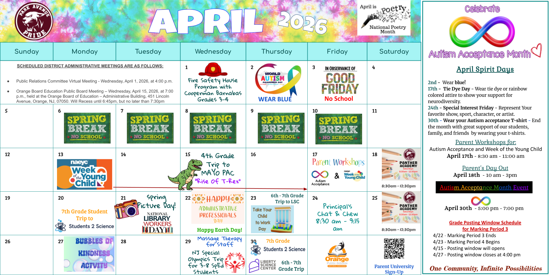 Spring Break Is Coming: The district will be closed beginning Friday, April 3, 2026 through Sunday, April 12, 2026!